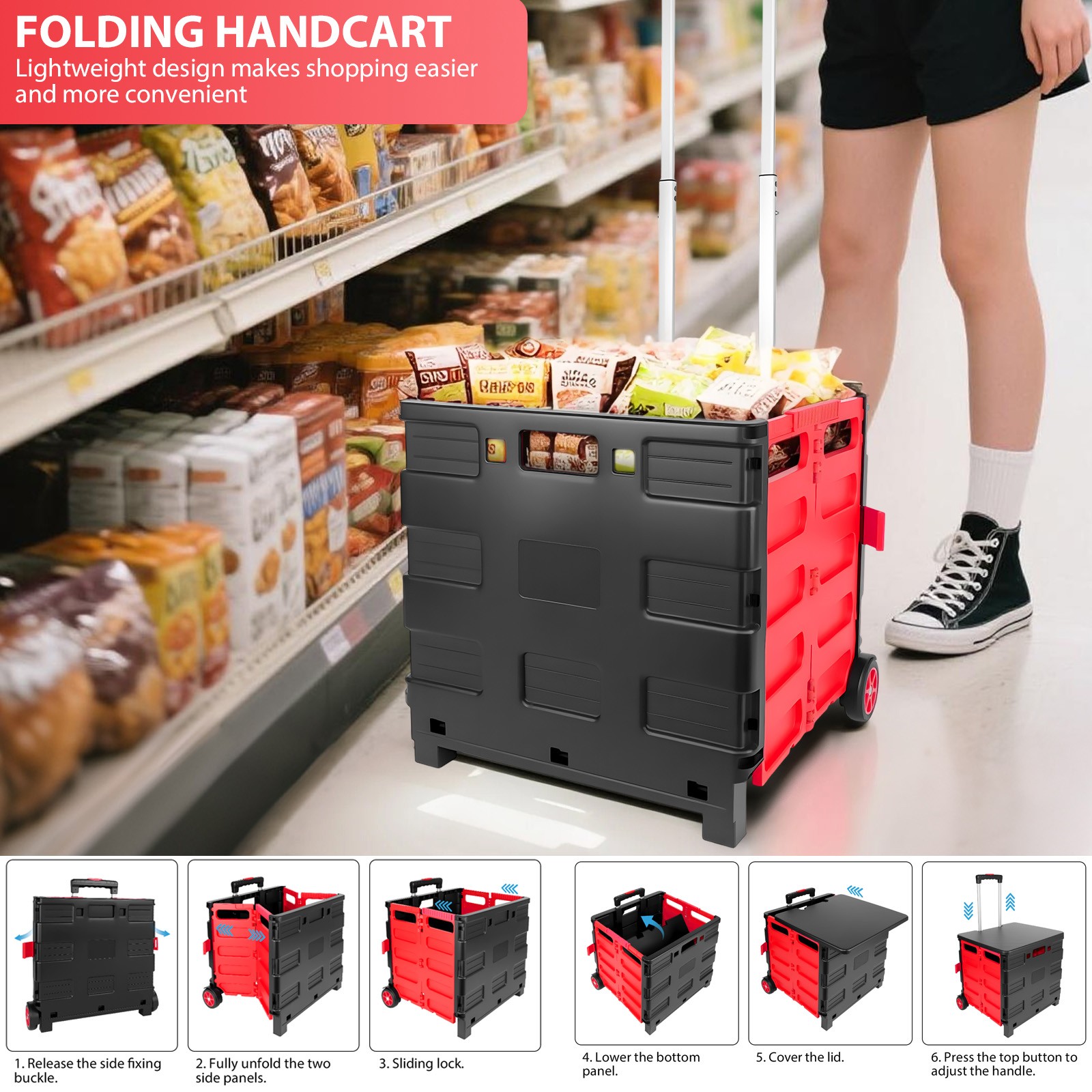 Large 40kg Folding Cart Shopping Trolley Rolling Car Boot Storage Box DAYPLUS