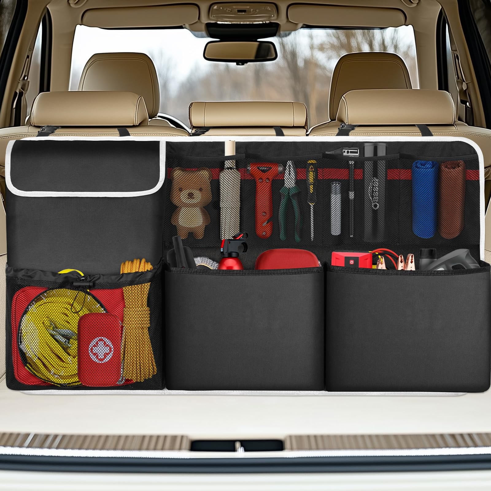 SURDOCA Car Boot Organizer, 4th Gen [8 Upgrades - XL] Super Capacity Auto Backseat Hanging Organizer, Car Boot Tidy Storage Bag with Lids, Space Saving Expert