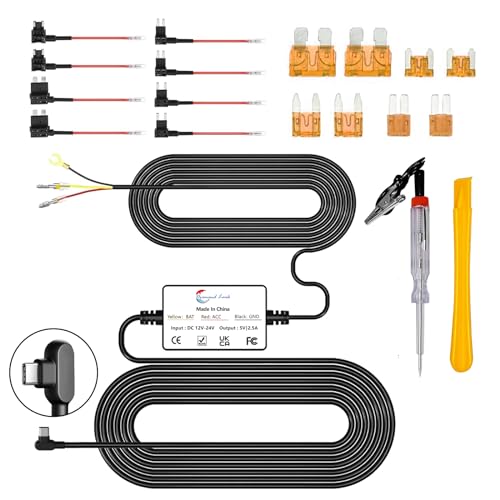 Gebildet Dash Cam Hardwire Kit,Type C USB Hard Wire Kit 12V-24V to 5V Hardwire Kit with Low Voltage Protection 13ft/320cm Car Dash Camera Charger Power Cord for Dashcam Supply Radar Detectors