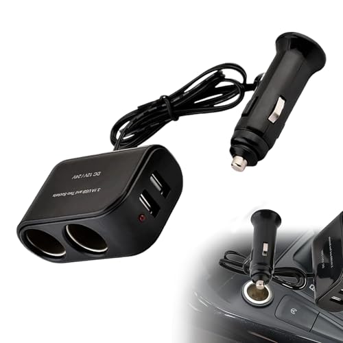 1PCS Cigarette Lighter Splitter 2-Socket 12V/24V Dual Cigarette Lighter Adapter Car with 2 USB Ports Double Cigarette Adapter for Car Fast Charging Compatible with Car Camera Dash Cam GPS Phone