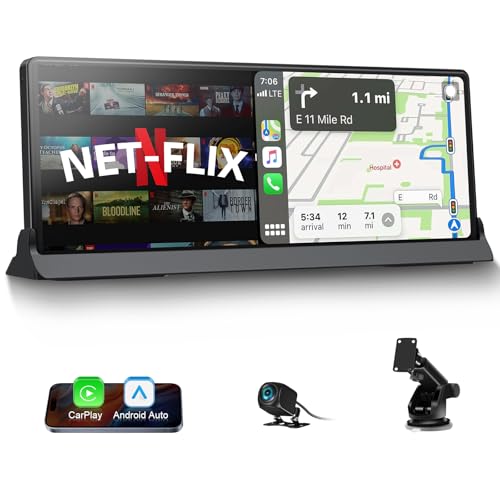 Atoppv Apple Car Play Screen with Net-flix YouTube Tiktok, 10.26" CarPlay Screen for Car with Rearview Camera, Wireless CarPlay Android Auto with GPS Navigation Voice Control for iOS 10+ Android 11+
