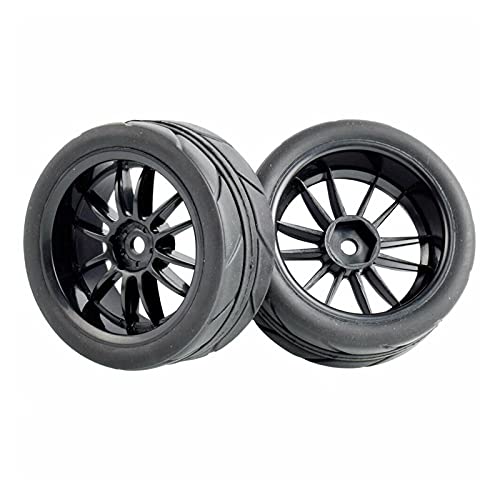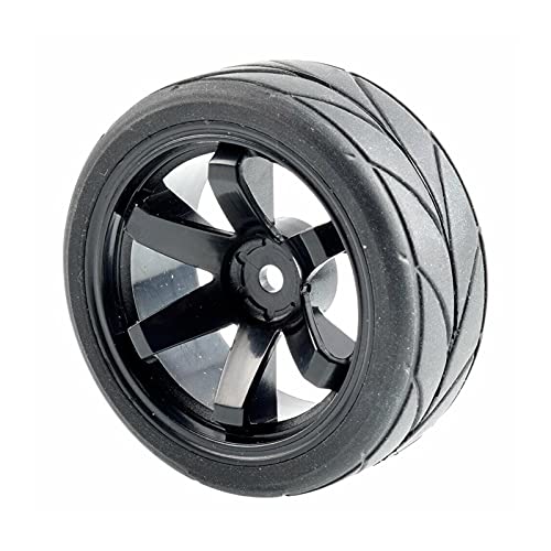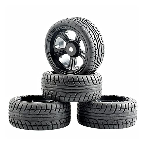 Vexilon 4Pcs Rubber Tires ABS Wheel, for HSP, for HPI, 1.10 On-Road Car Rc Car Rubber Tyre Replacement(Black Wheel)