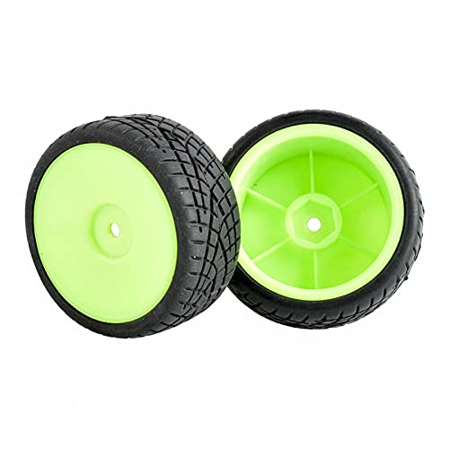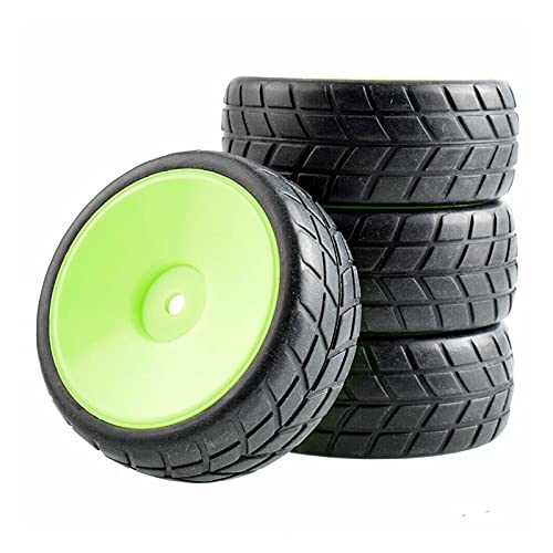 Vexilon 4Pcs Flat Racing Tires Wheel Offset 6mm, for HSP, for HPI, 1:10 On-Road Car Rc Car Rubber Tyre Replacement(Green Wheel)