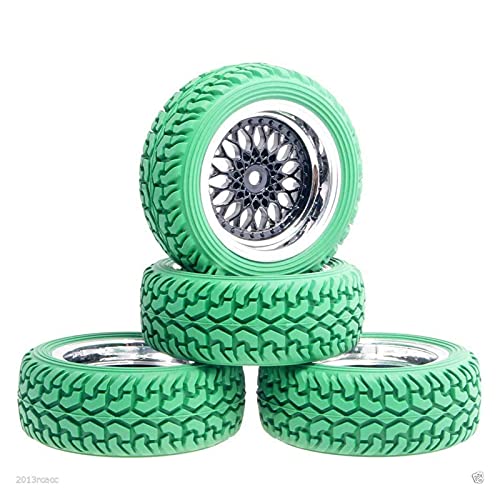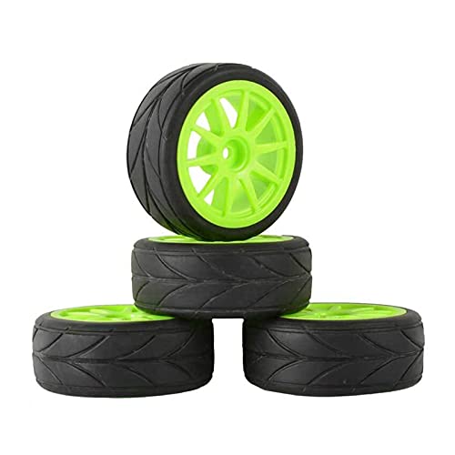 Vexilon 4Pcs Rubber Tires ABS Wheel, for HSP, for HPI, 1:10 On-Road Car Rc Car Rubber Tyre Replacement(Green Wheel)