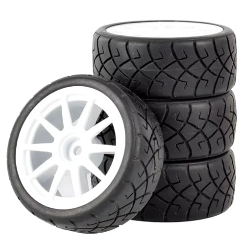 Vexilon 4Pcs Flat Racing Tires Wheel Offset 6mm, for HSP, for HPI, 1.10 On-Road Car Rc Car Rubber Tyre Replacement(White Wheel)