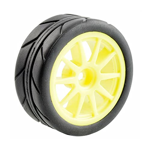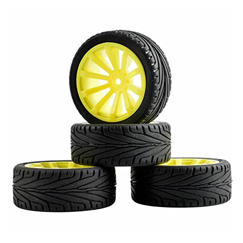 Vexilon 4Pcs Flat Racing Tires Wheel Offset 6mm, for HSP, for HPI, 1.10 On-Road Car Rc Car Rubber Tyre Replacement(Yellow Wheel)