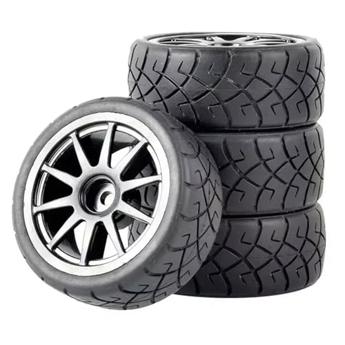 Vexilon 4PCS Grip Tires And Wheel, for HSP, for HPI, 1/10 1.10 On-Road Speed Car Rc Car Rubber Tyre Replacement
