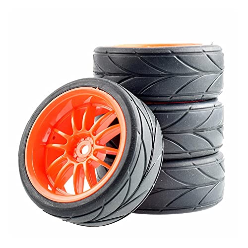 Vexilon 4Pcs Rubber Tires ABS Wheel, for HSP, for HPI, 1:10 On-Road Car Rc Car Rubber Tyre Replacement(Red Wheel)
