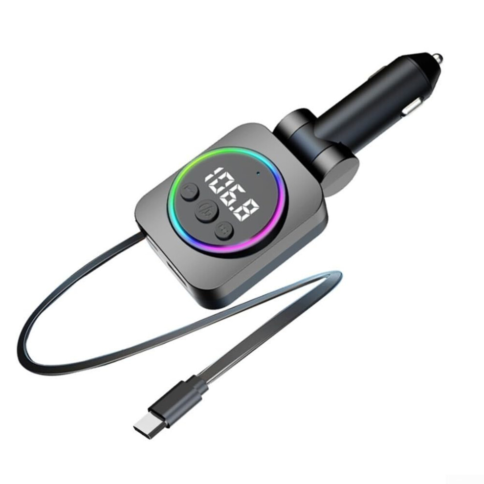 USB C Car Charger with Retractable Cable, Dual Fast Charging and Voltage Display for All Vehicles