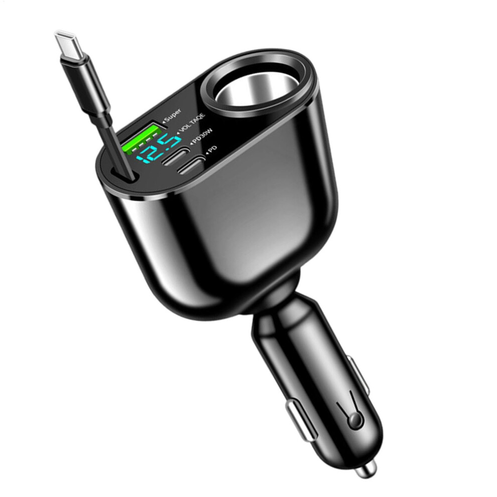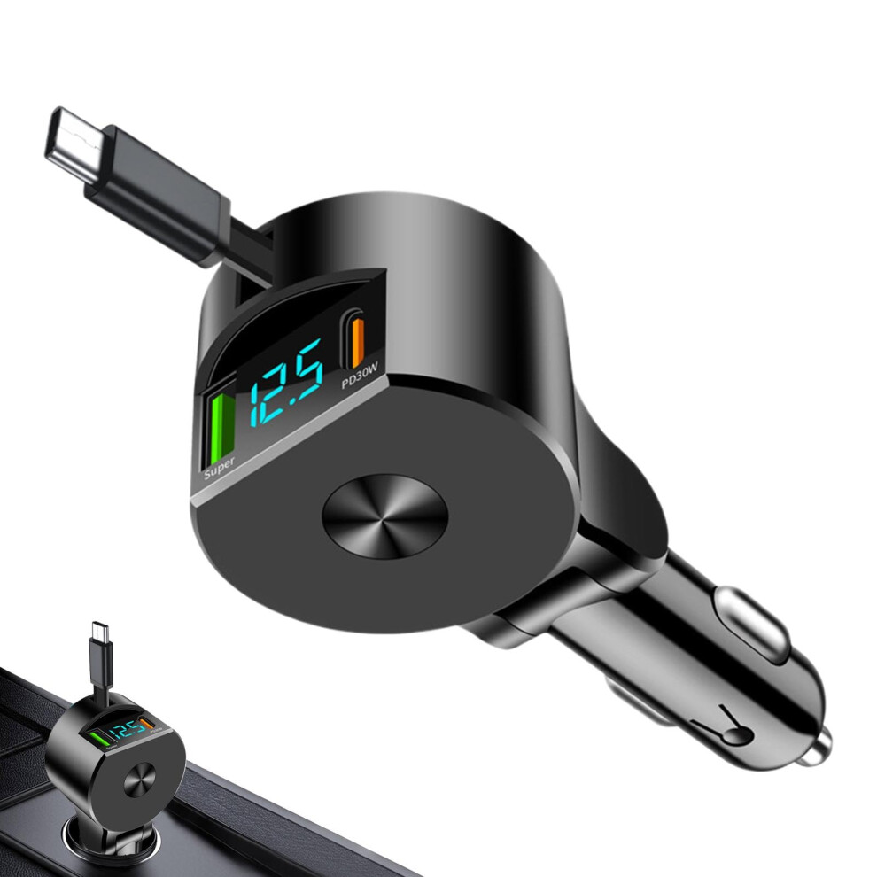 66W Digital Car Charger with Retractable Cable, Supports 0, Intelligent Fast Charging for Phones and Tablets (PD30WSuper fast)