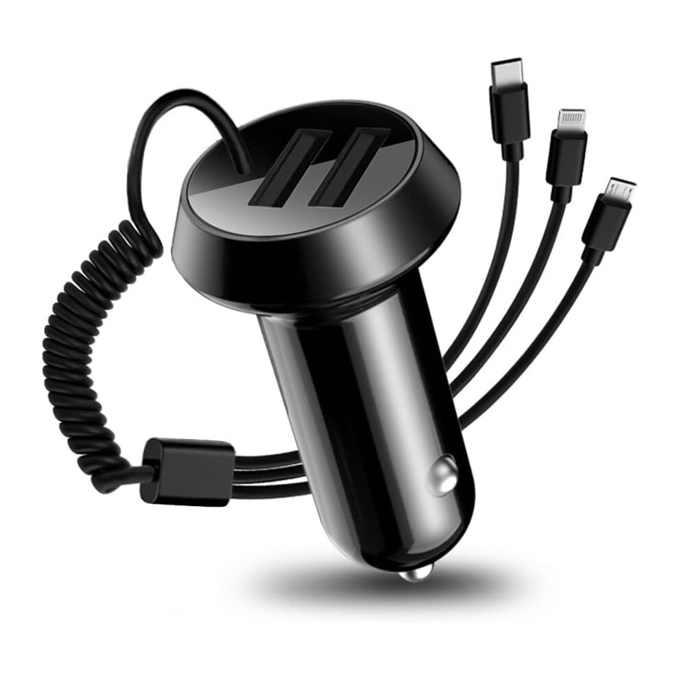 Quick Charge Car Charger, Dual Ports Car Charger Adapter with Stretchable Cable and 3 in 1 Fast Charging Cord for iPhone 13/Pro Max/Pro, 12/11, Samsun