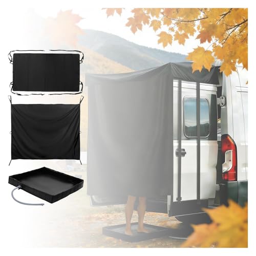 SJWJWOO Car Camping Three-Piece Set, Includes Shower Awning, Car Privacy Curtains, Rv Shower Pan, Easy Setup for Camping, RV Travelling