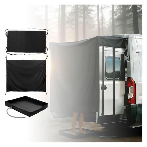 SJWJWOO Truck Camping Accessories Three-Piece Set, Includes Shower Awning, Car Privacy Curtains, Outdoor Shower Pan, Easy Setup Compatible with a Variety of Cars