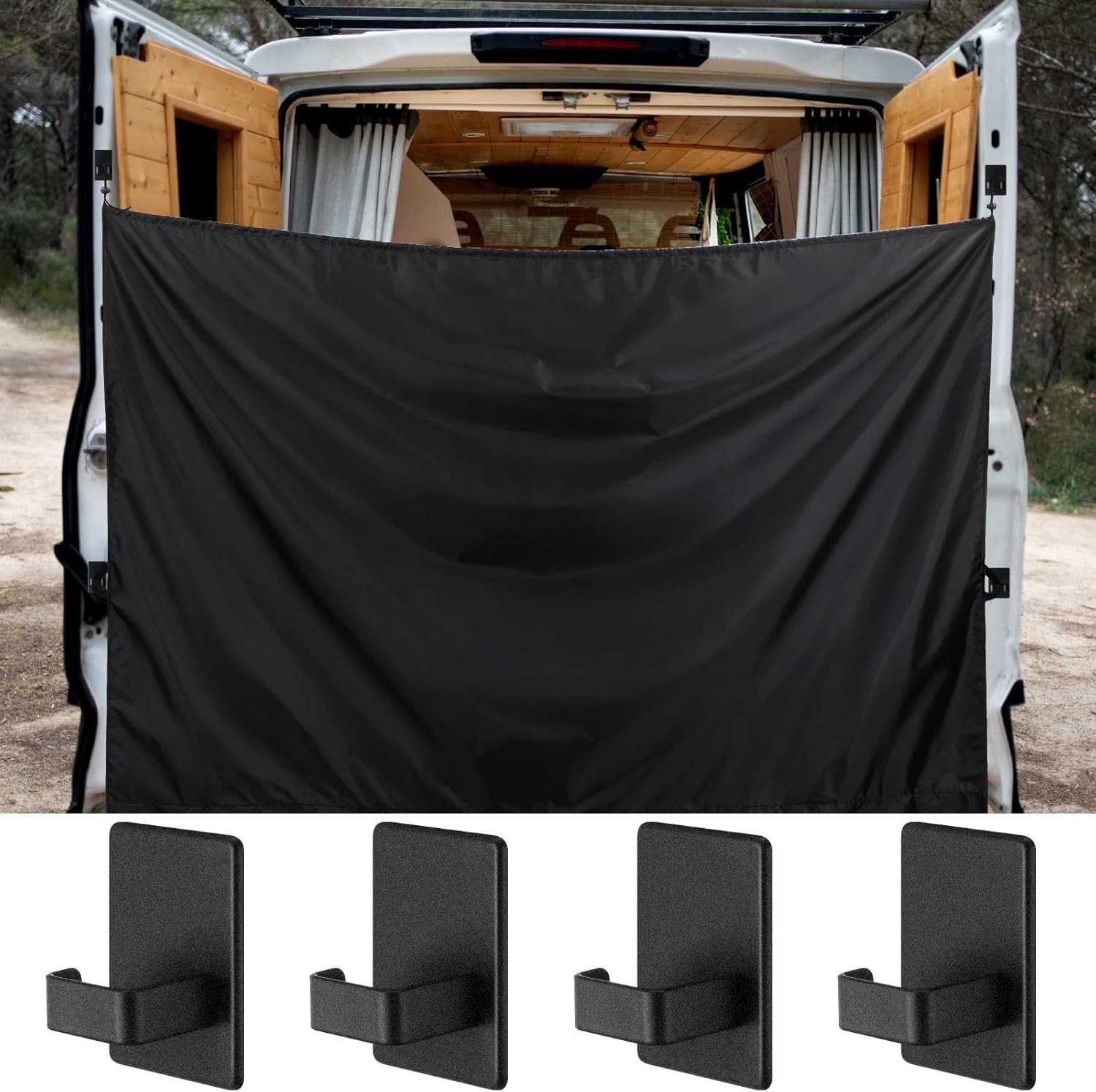ZATOOTO Campervan Car Divider Privacy Curtains (56 * 33inch) Suede Fabric Blackout Front Rear Side Window Covers Sun Shades,Removable Magnetic Van Car Camping Curtains (Black)