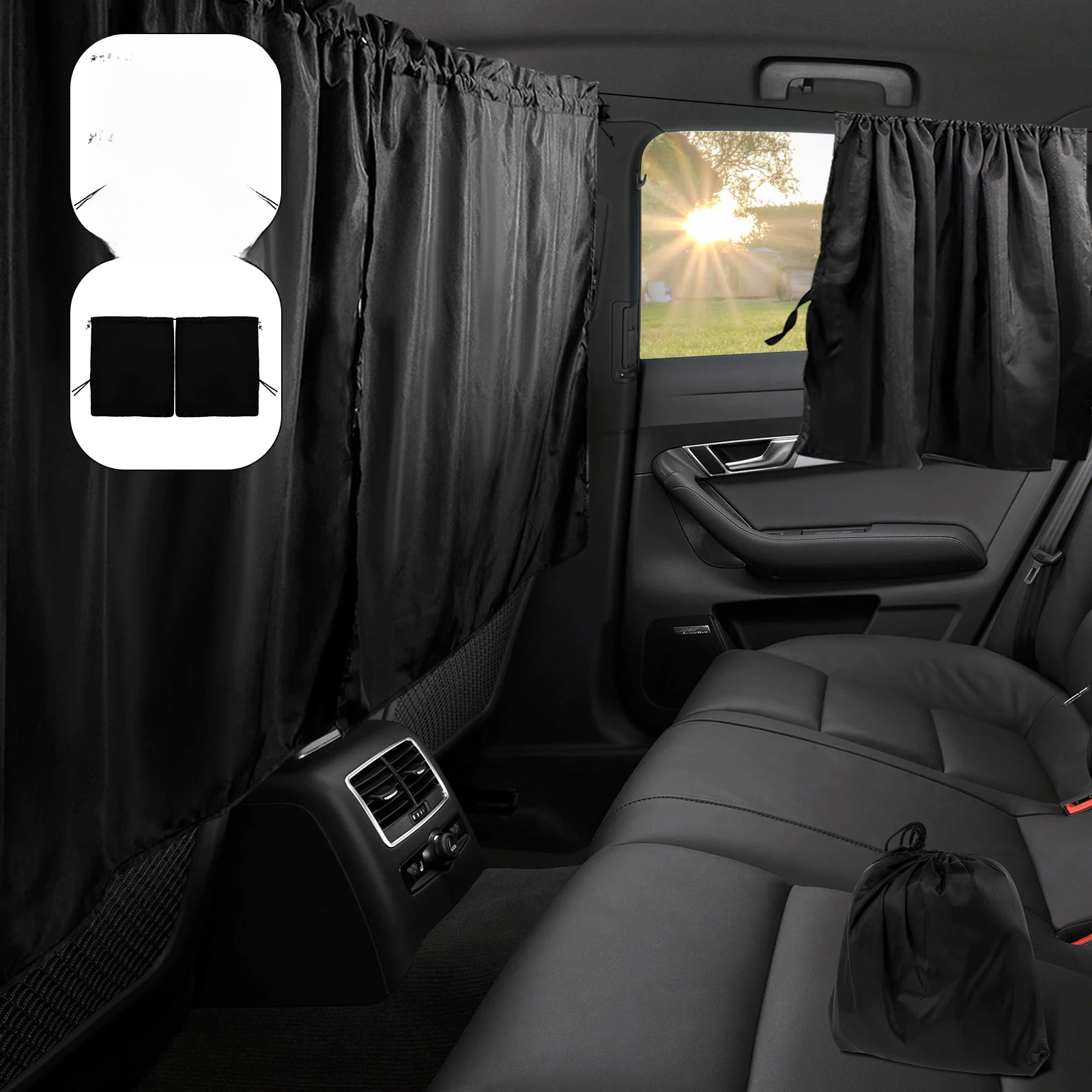 Car Divider Privacy Curtains, Sun Shade Side Window Covers, black