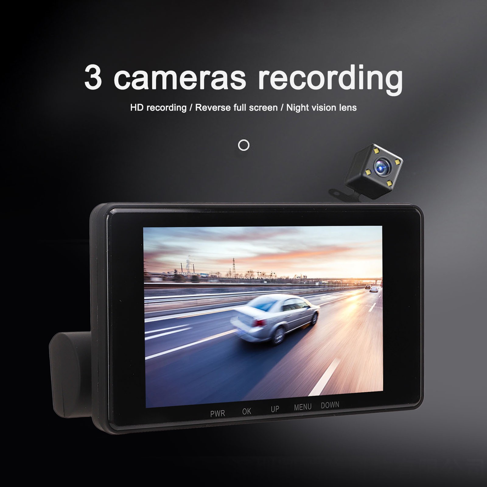 Car Dash Camera DVR 3 Camera Night Vis-ion 4in Display Screen Car Recorder Drivi