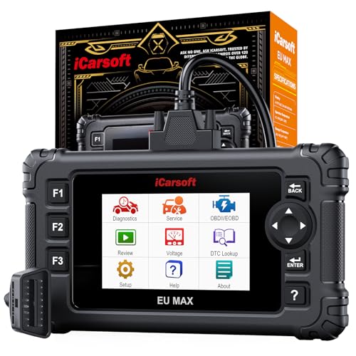 iCarsoft Car Diagnostic Tool for European Cars, All System OBD2 Scanner EU MAX, Car Code Reader with 48 Maintenance Services, Oil/EPB/BMS/SAS/INJ/TPMS Reset, Bidirectional Test, Lifetime Fr-ee Update
