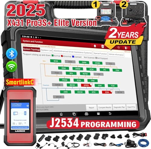 LAUNCH X431 PRO3S+Elite SmartlinkC 2025 Launch Diagnostic Tool Intelligent OE Topology, 50+ Service Full System Bidirectional Car Diagnostic Tool ECU Coding, Active Test, CANFD/DOIP/J2534,2 Yrs Update