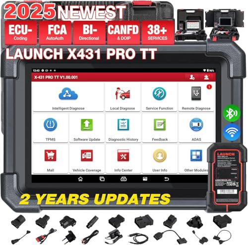LAUNCH X431 PRO TT LAUNCH OBD2 Scanner Bidirectional Car Diagnostic Tool Fast DBSCar VII Connector,Full System Diagnostic,ECU Online Coding, 38+ Reset,FCA AutoAuth, V.A.G Guide OBD2 diagnostic Tool