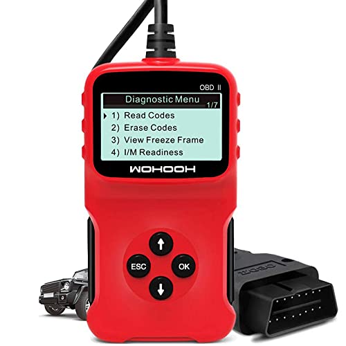Universal OBD2 Engine Fault Reader Car Scanner, Professional Auto Car Diagnostic Scanner Repair Tool, HD LCD Display Screen, I/M Readiness Smog Check CAN Diagnostic Scan Tool (RED)