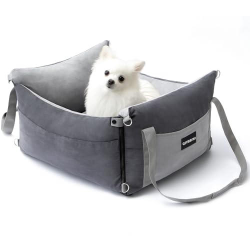 GoBuyer Waterproof Pet Dog Car Seat Booster Carrier Box and Basket with Seat Belt Harness Restraint for Puppy Cat Travel (Grey, Standard 40x40cm)