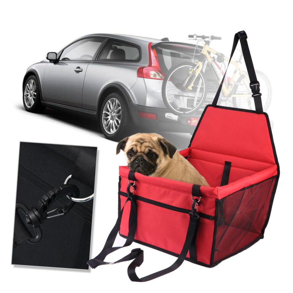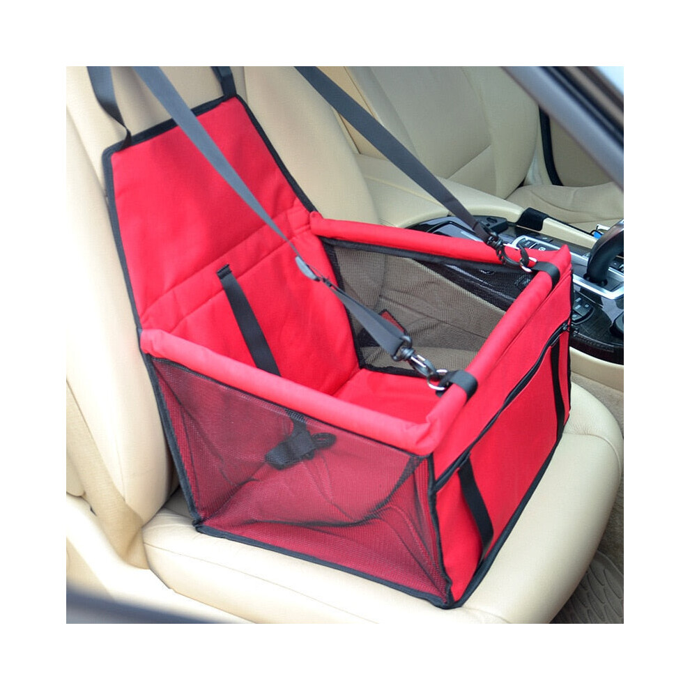 (Light Red) Portable Pet Dog Car Carrier Seat Bag Seat Belt Booster Waterproof Basket Safety Mesh Hanging Bag Puppy Cat Supplies