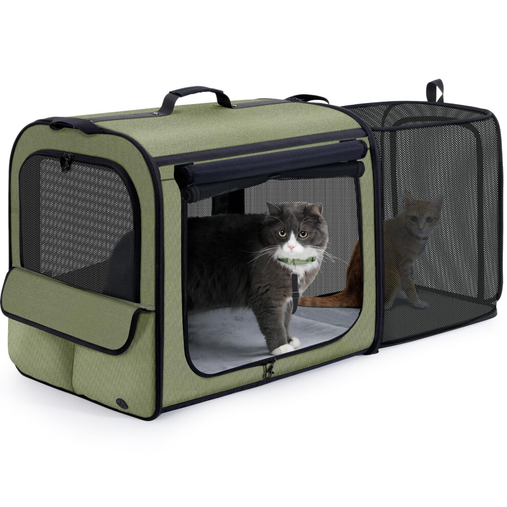 Pecute Dog Car Carrier Stable and Light Weight, Expandable Extra Space Dog Carrier for Cars, Breathable Dog Car Crate, Foldable Pet Carrier for Both Indoor and Outdoor Use, Pet Travel Crate Green