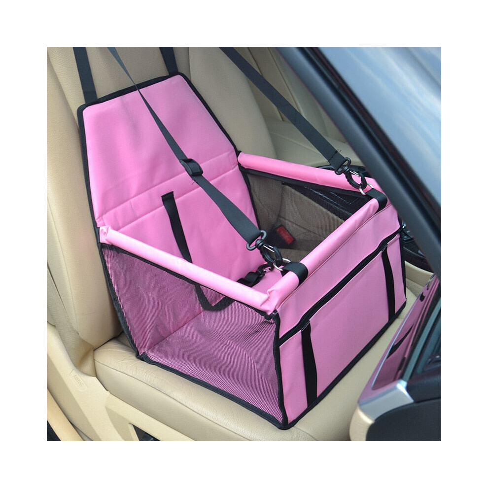 (Pink) Portable Pet Dog Car Carrier Seat Bag Seat Belt Booster Waterproof Basket Safety Mesh Hanging Bag Puppy Cat Supplies