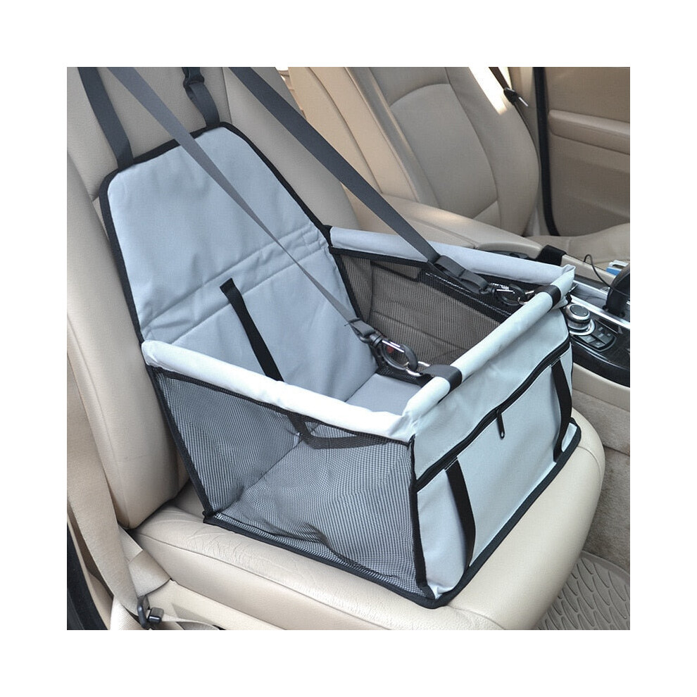 (Grey) Portable Pet Dog Car Carrier Seat Bag Seat Belt Booster Waterproof Basket Safety Mesh Hanging Bag Puppy Cat Supplies