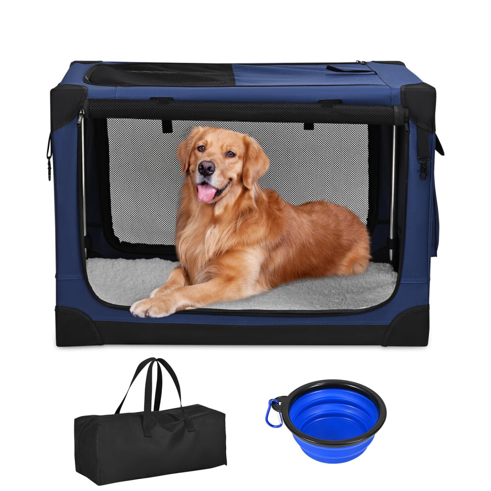 Kidken Dog Crate, 35 Inch Collapsible Dog Crate, Extra Large Dog Travel Crates for Large and Medium Dogs, Foldable Pet Crate Car Dog Carrier Soft Pet