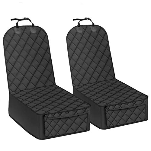 Qlfyuu Front Car Seat Covers Nonslip Scratch Proof Dog Seat Cover, 100% Waterproof Car Seat Protector with Anchor, Washable Pet Dog Seat Covers for Cars Trucks SUV (Black, 2 Pieces)