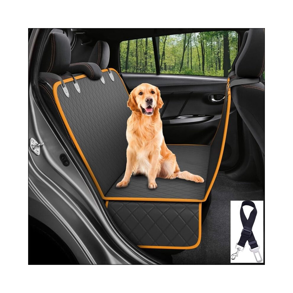 GoBuyer Dog Car Seat Cover Protector Liner for Car Boot and Back/Rear Seat Accessories - Universal & Non-slip and Openings for Seat Belt (Orange)