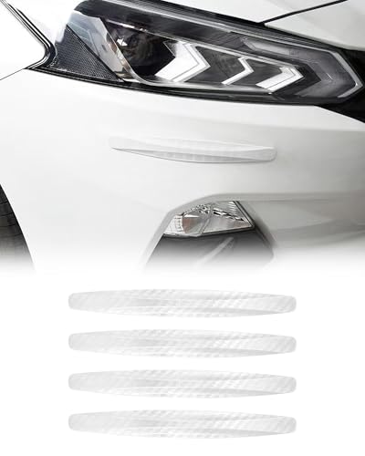 Bumper Guard Trim Strips, 4PCS Car Door Edge & Handle Protectors - Universal Accessories Fit for All Cars/SUV/Vans/Pickups, Carbon Fiber Texture Anti Scratch Trim, Easy Install (White, 13cm)