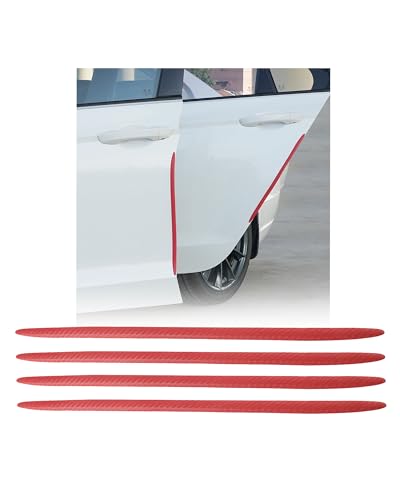 Bumper Guard Trim Strips, 4PCS Car Door Edge & Handle Protectors - Universal Accessories Fit for All Cars/SUV/Vans/Pickups, Carbon Fiber Texture Anti Scratch Trim, Easy Install (Red, 41cm)
