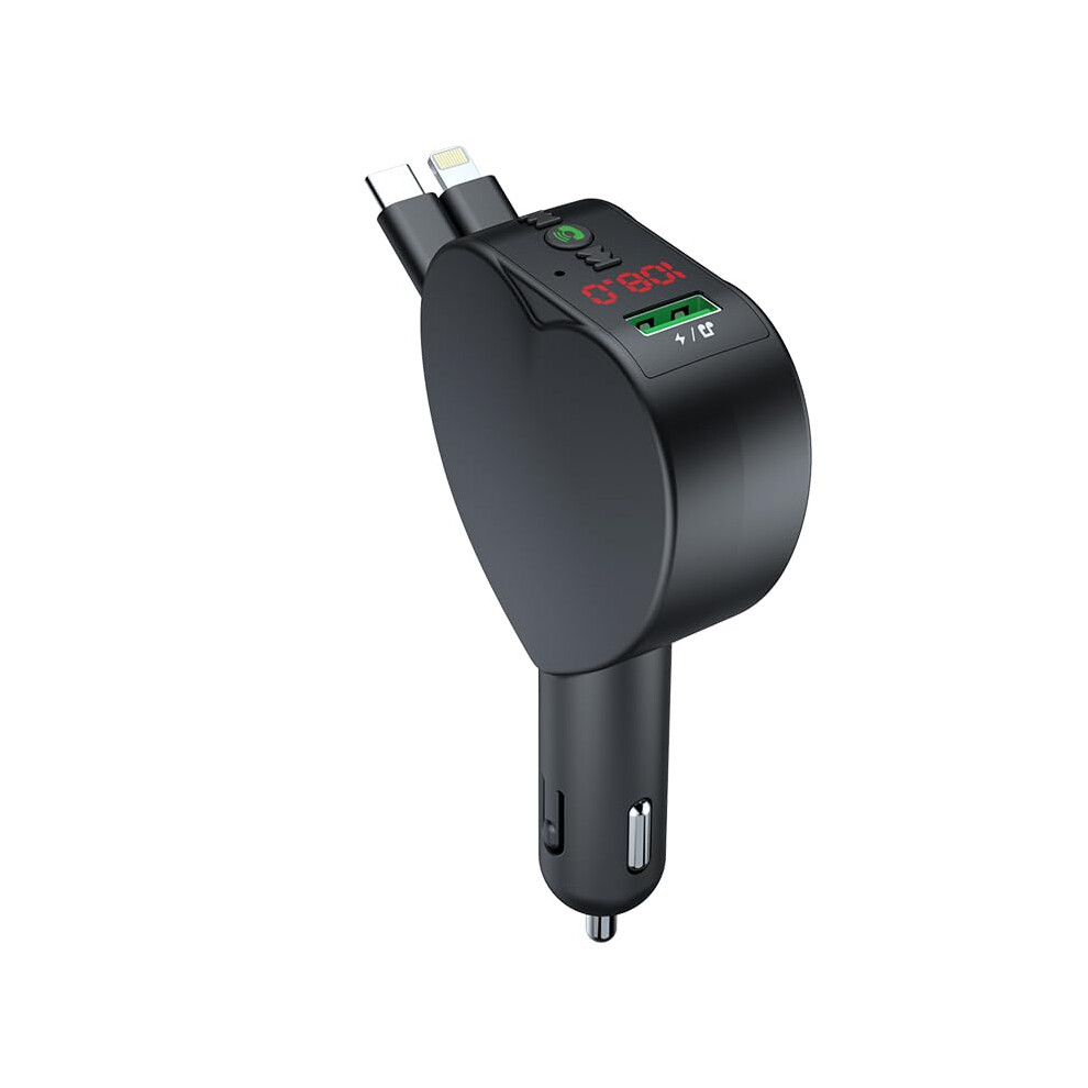 Bluetooth 5.3 Car Adapter FM Transmitter with Retractable Fast Charger, Handsfree Calling, MP3 Player, LED Display