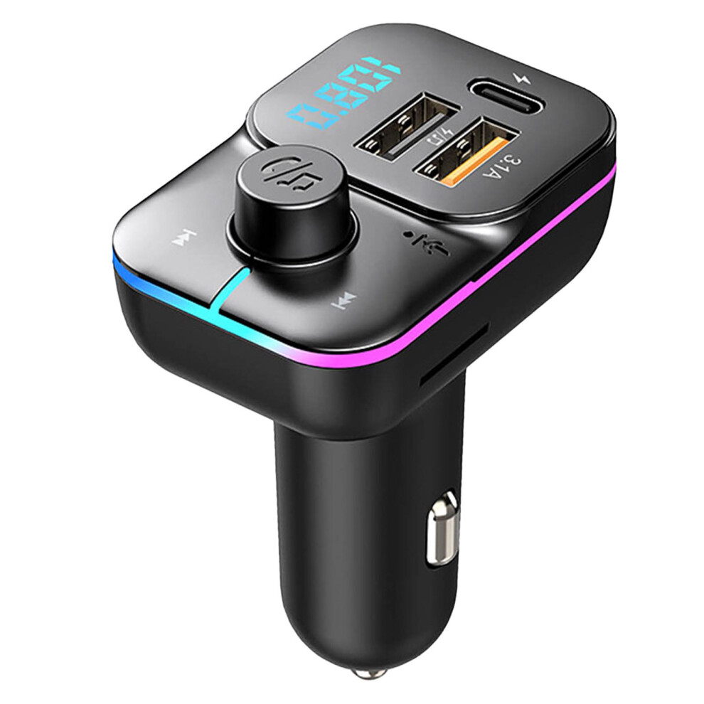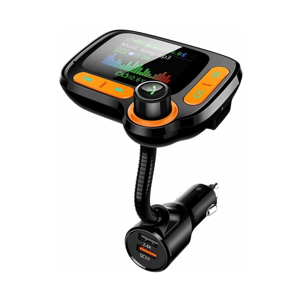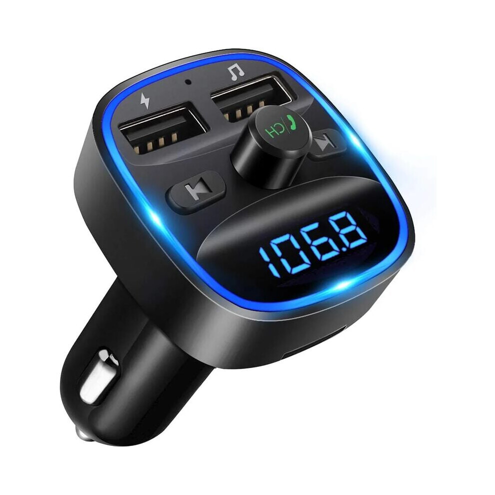 Hands-Free Calling Bluetooth Car Adapter FM Transmitter Voice Commands Deep Bass LED Backlit Fast Wireless Radio Charging Universal Compatibility