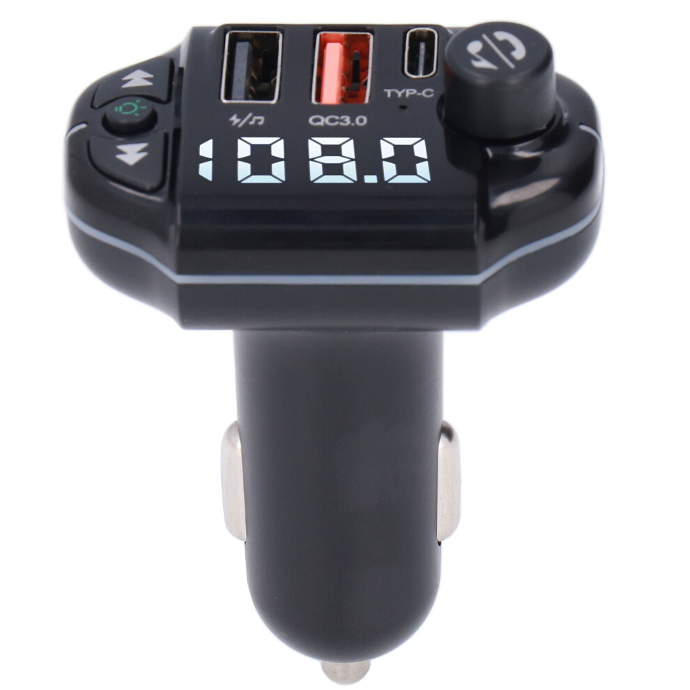 Wireless Handsfree Call Bluetooth Car Adapter FM Transmitter Fast Charging Hi Fi Audio LED Backlit Music Stereo Player Voltage Display Bass Booster Un