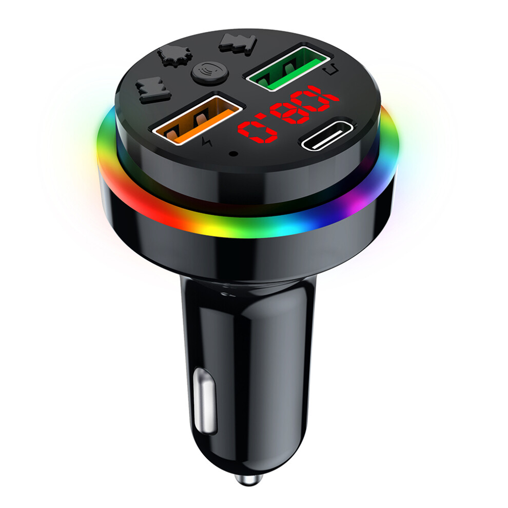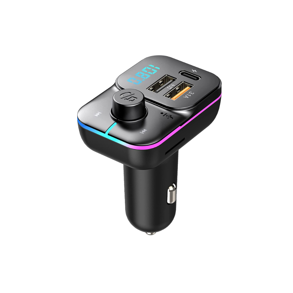PDF4 Bluetooth 5.3 Car Adapter FM Transmitter with Dual USB & 7-Color LED