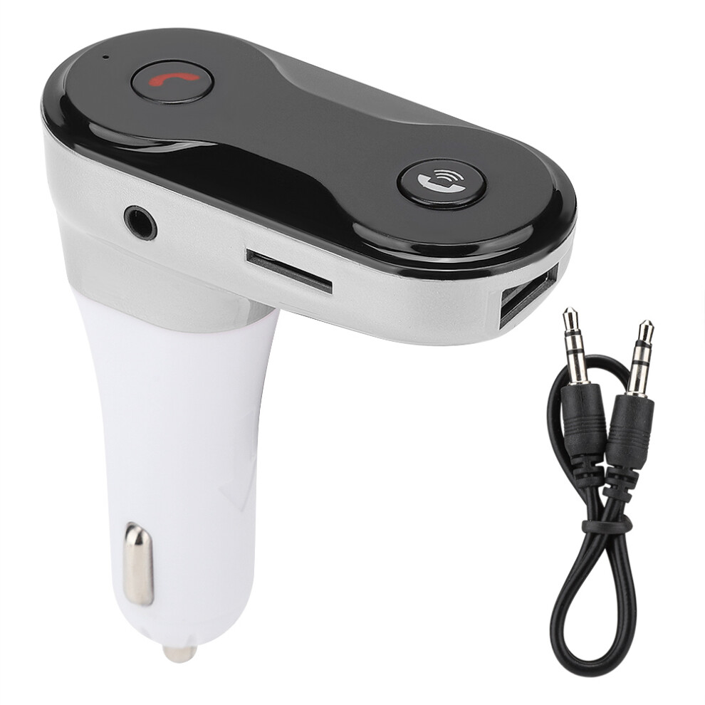 Bluetooth Car Adapter FM Transmitter Hands-free Calling Car Kit, White-Aquarius