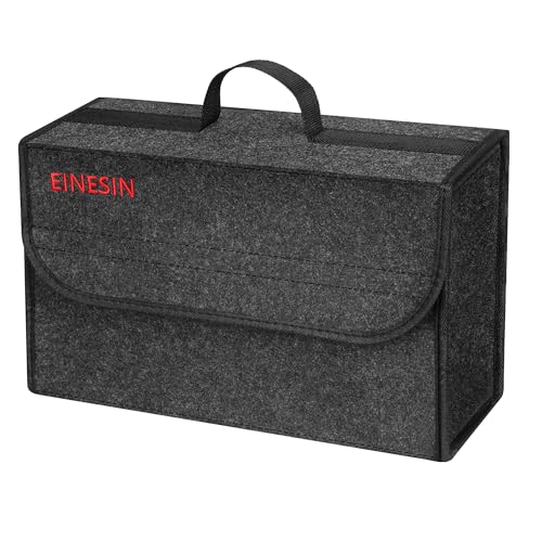 Einesin Car Boot Organiser Bag Anti Slip Foldable, Car Boot Tidy for Tools Breakdown Emergency Travel Tidy Van Caravan - Dark Grey Carpet Material - Suitable for All Vehicles