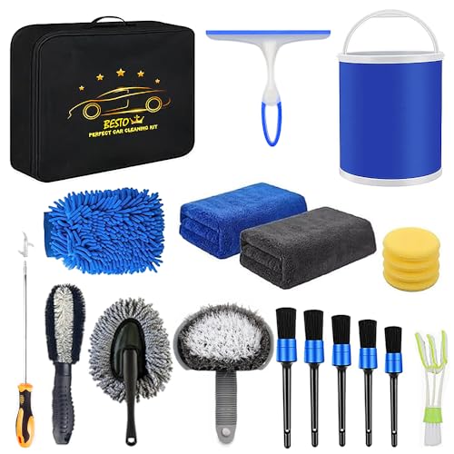 Xvoxy Car Cleaning Kit 20Pcs - Car washing Kit with 11L foldable Bucket - Car Cleaning Products (5 Detailing & wheel Brush)- Car wash kit interior & exterior - Car care gifts for Men/Women