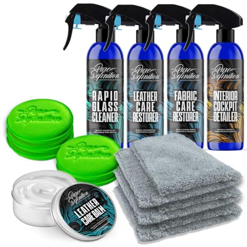 Pure Definition Car Interior Detailing Kit, Glass, Leather, Fabric Cleaner and Accessories - Cleaning Set Restores Trim, Upholstery, Plastic and Mirror