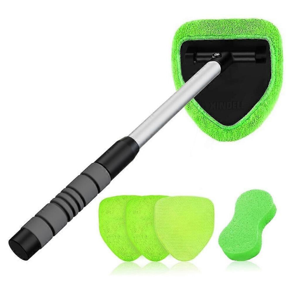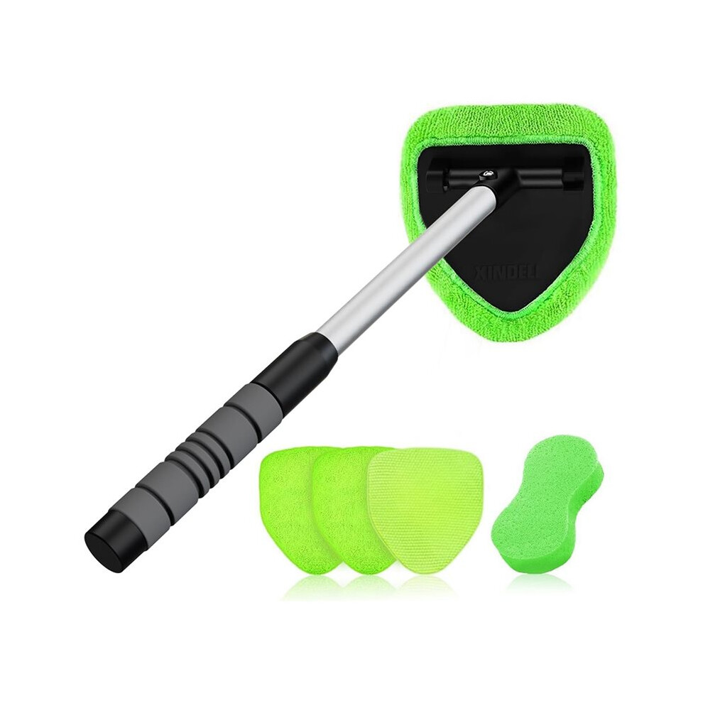Windshield Cleaner Tool - Large Head Car Interior&Exterior Window Cleaning Kit with Extendable Handle & Microfiber Pads