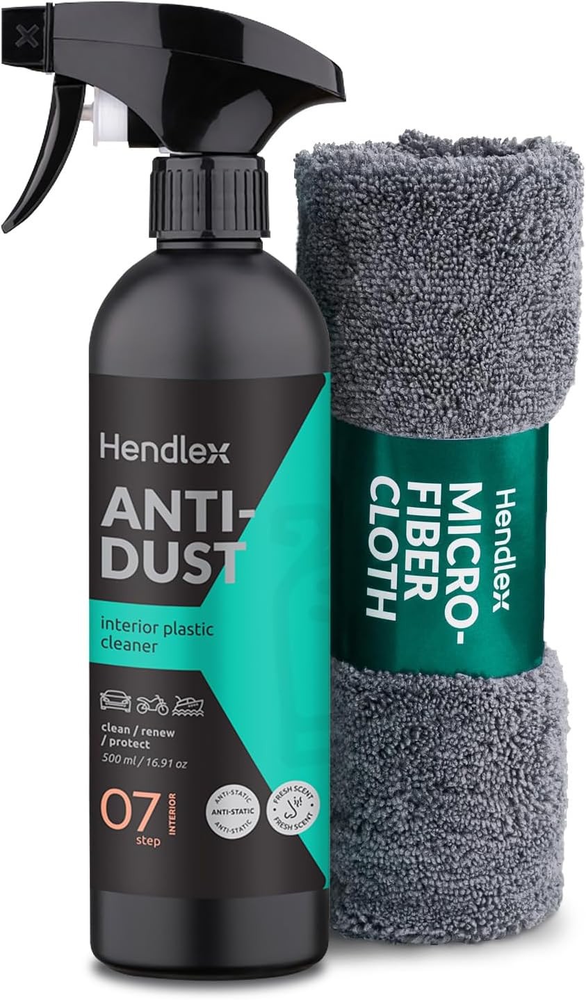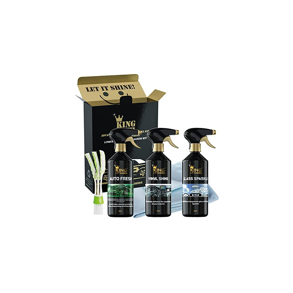 King of Sheen Interior Car Cleaning Kit - Auto Fresh 500ml, Vinyl Shine 500ml and Glass Sparkle 500ml, Professional Glass Microfibre Cloth and Mini Detailing Duster