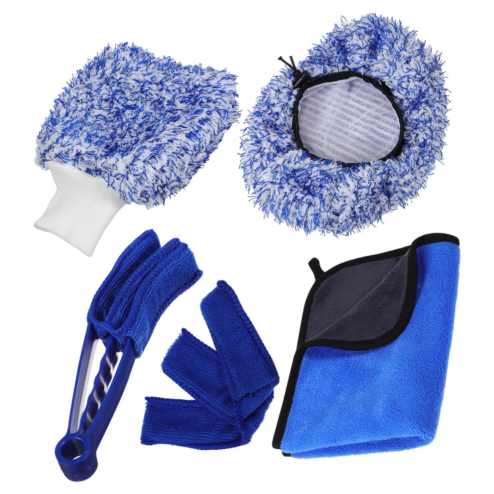 5pcs Car Interior Cleaning Kit Auto Wash Set Soft Towel Glove Brush Cover Ac Outlet Brush Replacement Cloth