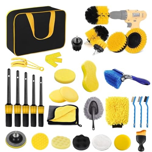 Car Cleaning Kit, Drill Scrubber & Detailing Brush Set, AC Vents Polisher & Microfiber Towels, Auto Interior Detailing Tools(36PCS)