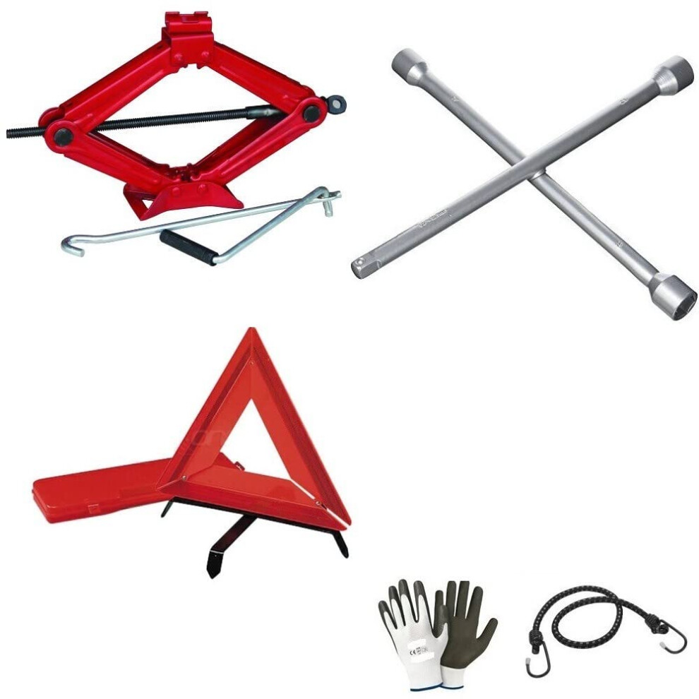 CRIC A PANTOGRAPH 2T Car Jack Emergency Kit For Cars And Vehicles With Cross Wrench For Bolts And Fluo Red Triangle