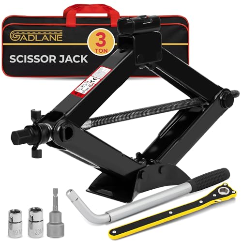 GADLANE Scissor Jack Kit - 3 Ton Portable Heavy Duty Car Jack Kit with Socket Drill Adapter, Extendable Wrench, Ratchet for Easy Lifting Cars/SUVS/Sedans, Storage Bag (Lifting Range: 3.9-15.3")