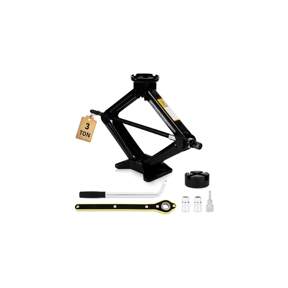 Car Jack Kit Scissor Jack 3 Ton (6,614 lbs), Portable Tire Jack Tool, Ideal for SUV and Auto - Universal Car Emergency Tire Changing Kit with Socket Drill Adapter