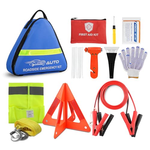 GADLANE Car Breakdown Emergency Kit - Extra Large Roadside Car Emergency Kit with Warning Triangle, Jump Leads, Tow Rope, First Aid Kit, Safety Hammer etc New Driver Car Kit with Storage Case